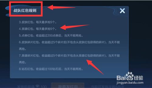 工具/原料华为mate30 pro王者荣耀战队红包方式/步骤1手机打开“王者荣耀”。2点击“起头游戏”。3进入游戏点击“战队”。4点击“红包”。5点击“帮忙”。6经由过程帮忙就能看到“红包法则”,领会各类红包的收益上限。END