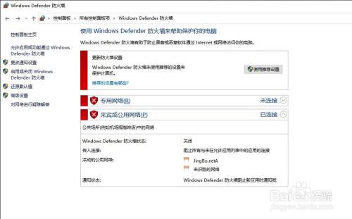 点击windows defender防火墙