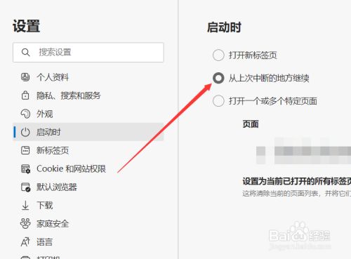 这样我,我们就进入到了设置菜单傍边,左侧菜单中有一个启动时的选项。