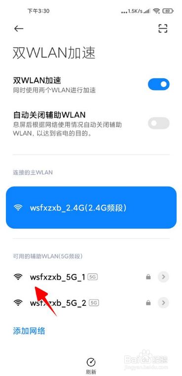 毗连上本家儿WLAN后,选择一个用于加快的辅助WLAN即可
