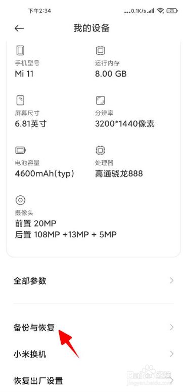 点击“备份与恢复”