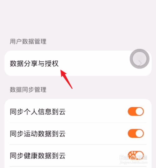 点击数据分享与授权的选项。