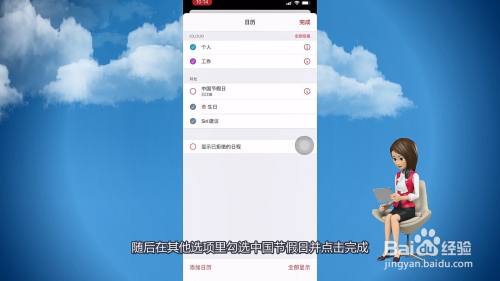 随后在其他选项里勾选中国节沐日并点击完当作。