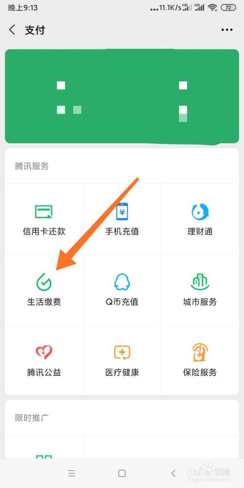 在办事栏面前目今点击按钮【糊口缴费】。