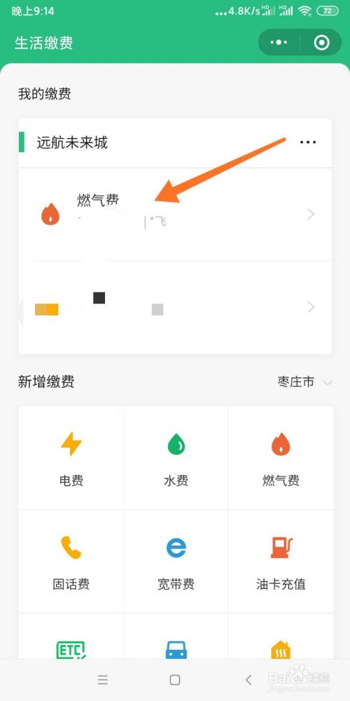 选择燃气费按钮。