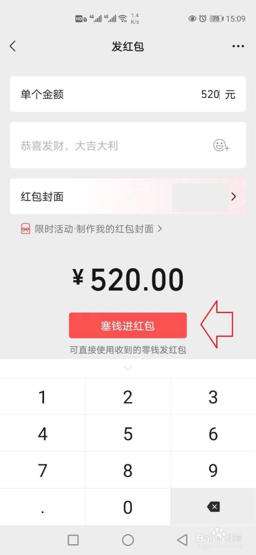 然后选择【红包封面】,点击下方的【塞钱进红包】。