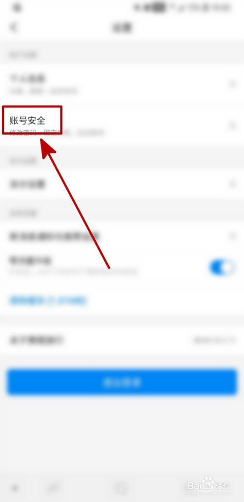 点击设置页面中的账号平安。