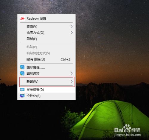第一步:鼠标右键点击桌面空白的处所,弹出菜单,如图所示。