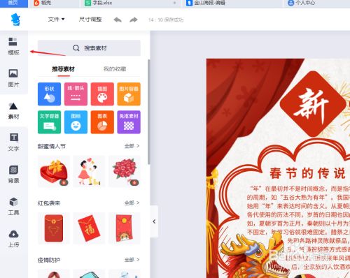 打开新春手抄报之后,在左侧东西栏中,我们可以打开模板项目栏。