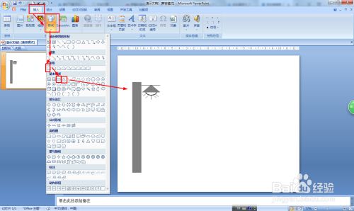 点击插入——外形——选择矩形、直线、三角形和卵形画出路灯。