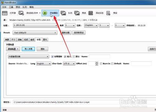 第六步:点击起头编码,归并字幕和视频,如图所示。