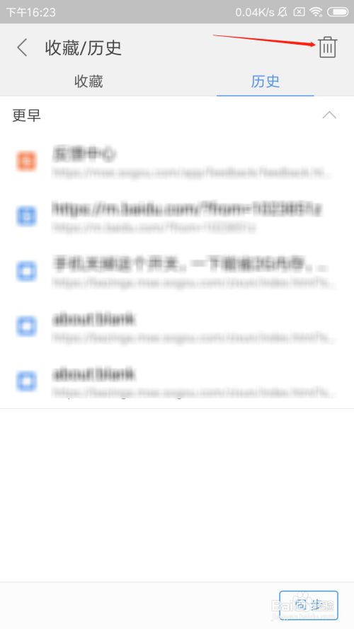 在浏览汗青记实页面中,点击右上角的垃圾桶按钮。