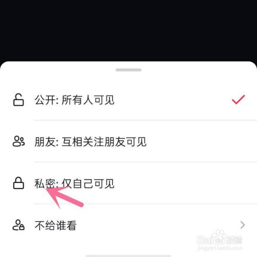 选择【私密:仅本身可见】就可以让别人看不到我的作品了。