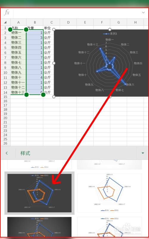 最后,我们进入样式菜单进行编纂,从而获得最终的雷达图表结果。