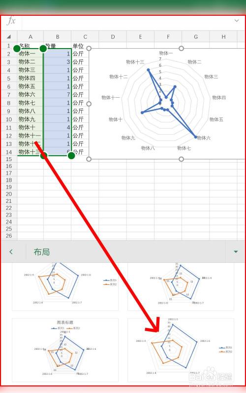 点击生当作的雷达图表,我们进入结构菜单进行编纂。