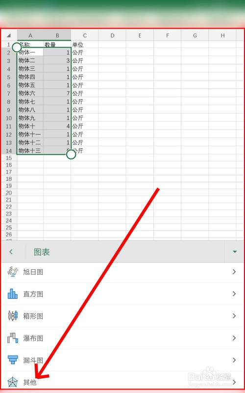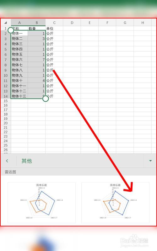 在图表菜单下方点击其它选项进入雷达图表的模板。