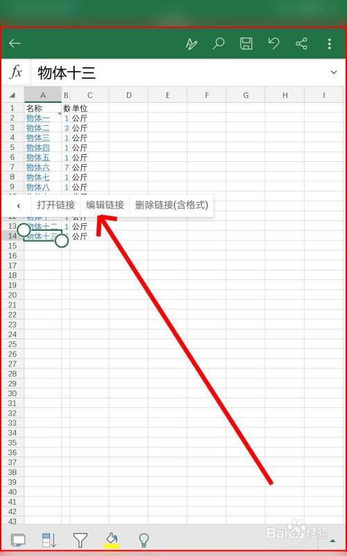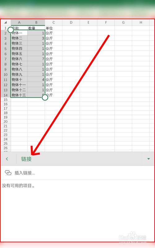 从手机中打开表格文档,我们点击右下方三角形进入插入菜单,然后点击链接选项。