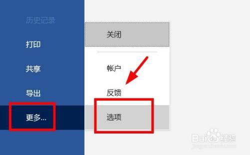 点击更多,“选项”。