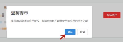 在弹出的窗口中点击【确认】即可解除第三方授权。