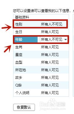 别离把【性别】和【春秋】设置为【所有人不成见】,即可让qq不显示性别和春秋。