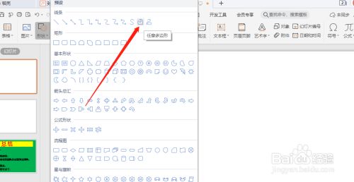 PPT幻灯片中建造肆意多边形封面,选择肆意多边形。