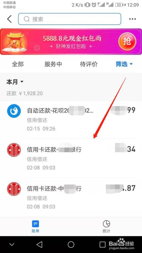 6:支付宝APP所有信用卡还条目具体明细。