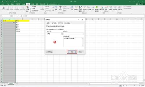 这时我们在输入反复数据后,就会提醒禁止输入反复数据。