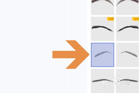 点击此中一条目眉形,然后就会在原祖先物照片上方显示出该眉毛的饰件,如图二所示