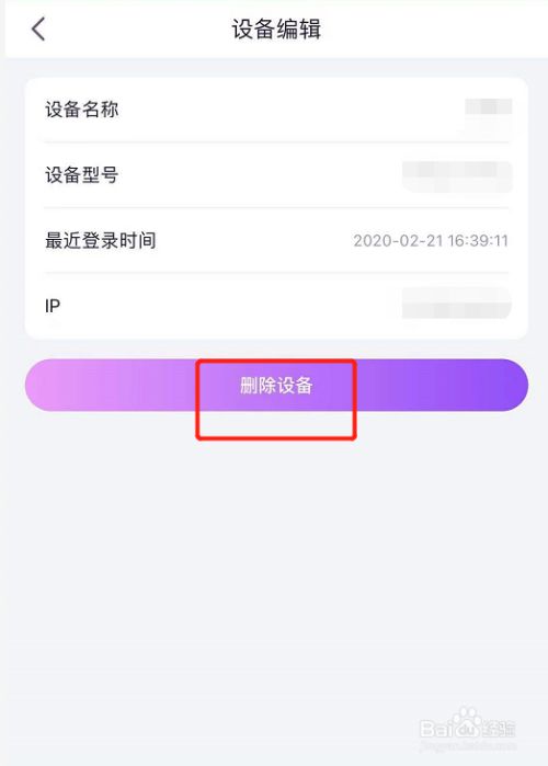 进入到设备编纂页面之后,点击最下方的【删除设备】按钮,如下图;