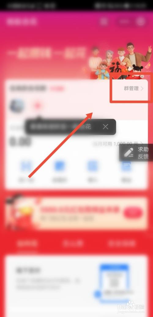 进入到蚂蚁合花页面后,再点击进入群办理页面;