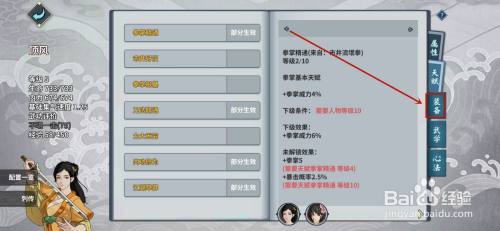 四.进入相关界面之后,再点击右边的【装备】的选项,进入到穿戴装备的界面傍边。