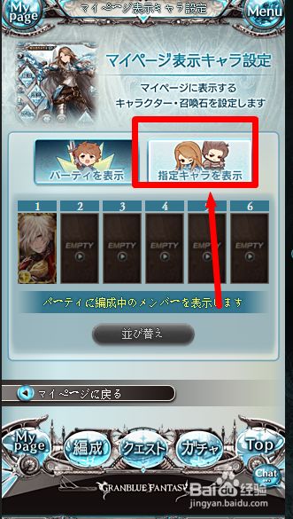 工具/原料手机碧蓝幻想方式/步骤1点击首页左边的setting。2点击右边的按钮。3点击步队栏。4点击上方可以选择人物、呼唤石、本家儿角、皮肤作为封面脚色。5点击选择想设置的图像。6点击蓝色按钮即可设置当作功。END注重事项按照本身的环境选择。