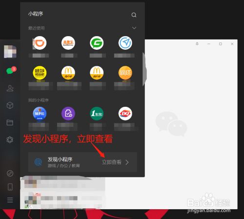 打开微信后,发现左侧边栏有个微信小程序的图标,点击进去!