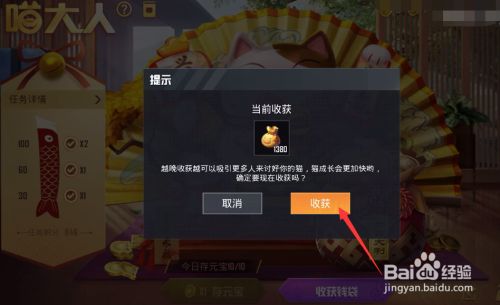 工具/原料手机系统:IOS14.3游戏:和平精英方式/步骤1打开游戏,如图所示点击【喵大人】。2如图所示点击【收成荷包】3如图所示点击【收成】4如图所示点击【拆开荷包】5如图所示点击【确定】获得奖励END注重事项点击【收成荷包】获得奖励