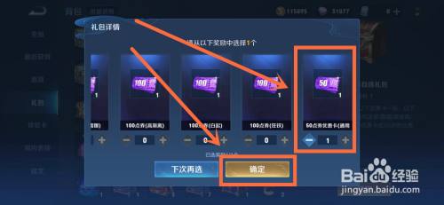 接着,选择【点券优惠卡通用】奖励,并点击【确定】进入。如下图所示
