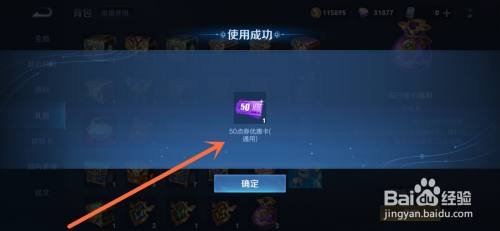 最后,看到当作功获得通用点券优惠卡即可。这样我们就知道王者荣耀皮肤通用优惠券可以从哪里获得了。如下图所示