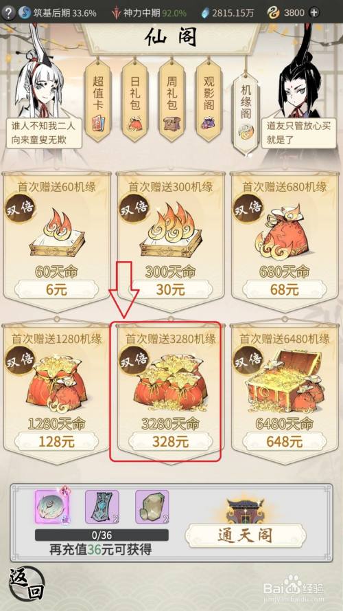 工具/原料手机一念逍遥方式/步骤1点击进入游戏。2点击礼包。3点击机缘阁。4点击选择198元以上档位的礼包,只有一次充值跨越198元,系统就会主动活着界频道中发出红包,累计充值不算。5点击选择支付体例。6点击确认支付即可。END注重事项按照本身的环境选择。
