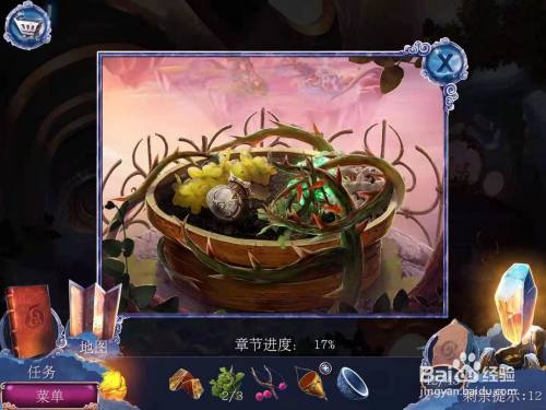 来到花盆处,此时花盆中的花被荆棘笼盖,不克不及接近,只拿到上面的空砝码。