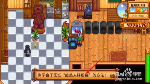 打开星露谷物语游戏,点击电视机里面【酱料女皇】的进修菜品。