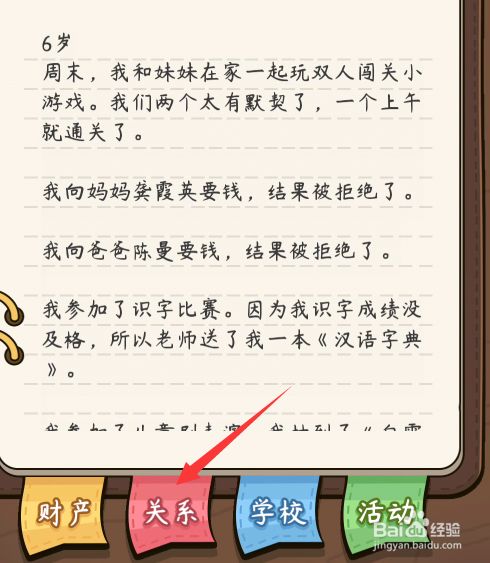 工具/原料手机系统:WIN10游戏:人生模拟器方式/步骤1打开游戏,如图所示点击【回到本年】。2如图所示点击查看【关系】3如图所示点击选择查看【家庭当作员】4如图所示点击【要零花钱】5如图所示点击空白处封闭END注重事项点击选择查看【家庭当作员】
