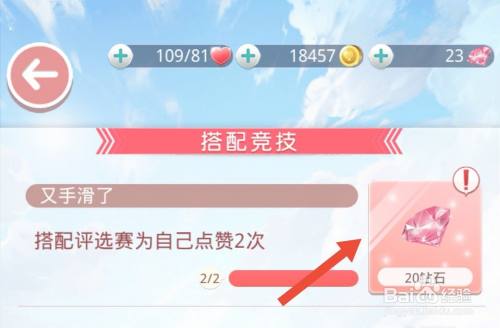 工具/原料华为Android10古迹暖暖方式/步骤1点击加入搭配评选赛。2设置搭配后,点击撑持老友,进入点赞界面。3找到本身的搭配,点击赞(第二次给本身的搭配点赞)。4回到本家儿界面,点击当作就。5点击路程印迹界面。6点击搭配竞技。7找到【又手滑了】当作就。8点击领取【又手滑了】当作就的奖励--20粉钻。END