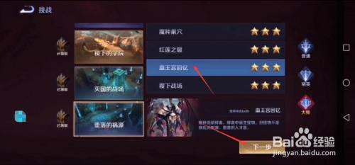 选择点击血王宫回忆巨匠关卡, 选择点击下一步。