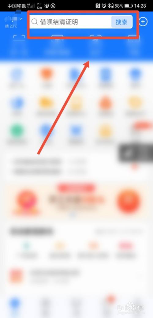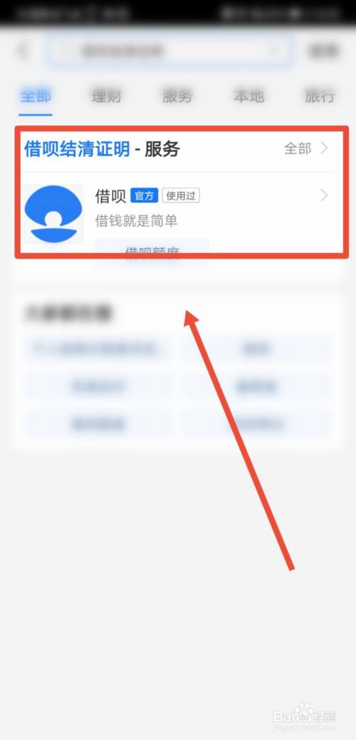 接着再在支付宝首页,点击搜刮“借呗结清证实”;