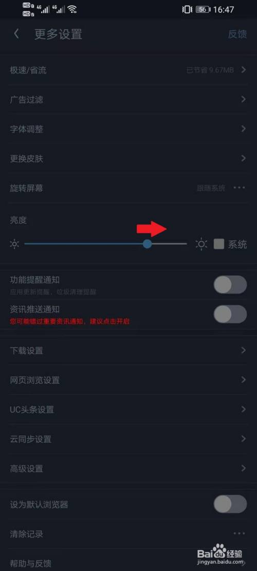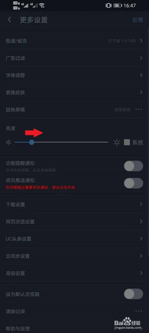 找到“亮度”选项,拖动下面的滑块即可调节夜间模式亮度。