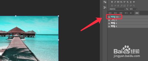 ctrl+c复制蓝色通道,再点击绿色通道按ctrl+v,然后点击RGB通道。