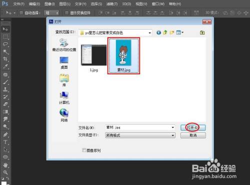 第二步:在弹出的对话框中,选中一张需要将布景酿成白色的图片,单击“打开”按钮。
