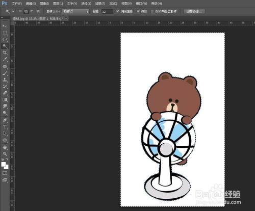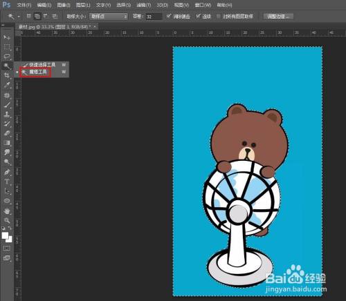 第四步:选择“魔棒东西”,单击图片中的布景区域,选中布景区域。