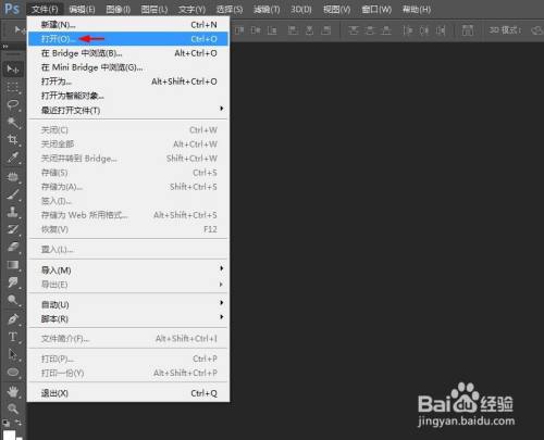 第一步:打开ps软件,选择菜单栏中的“文件--打开”。