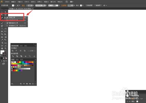 启动软件,新建文件,在东西栏中选择钢笔东西。