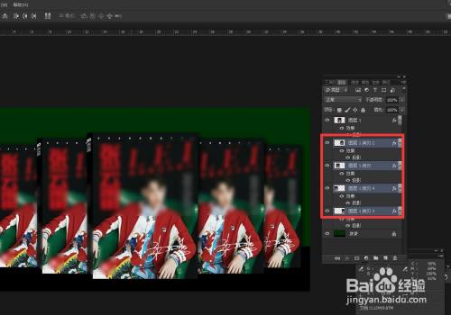 将需要添加投影结果的图层全数选中,点击第一个然后SHIFT键点击最后一个。